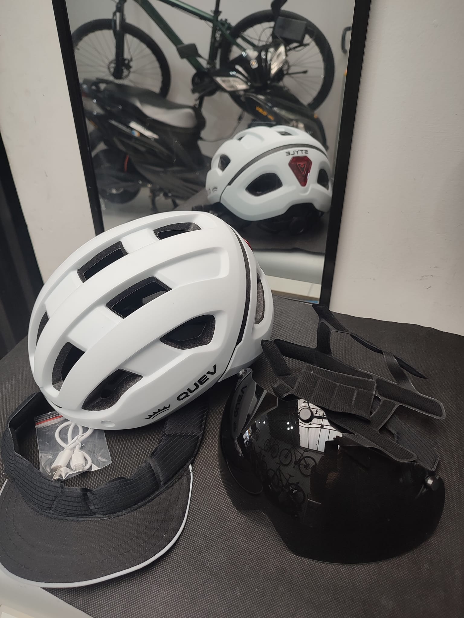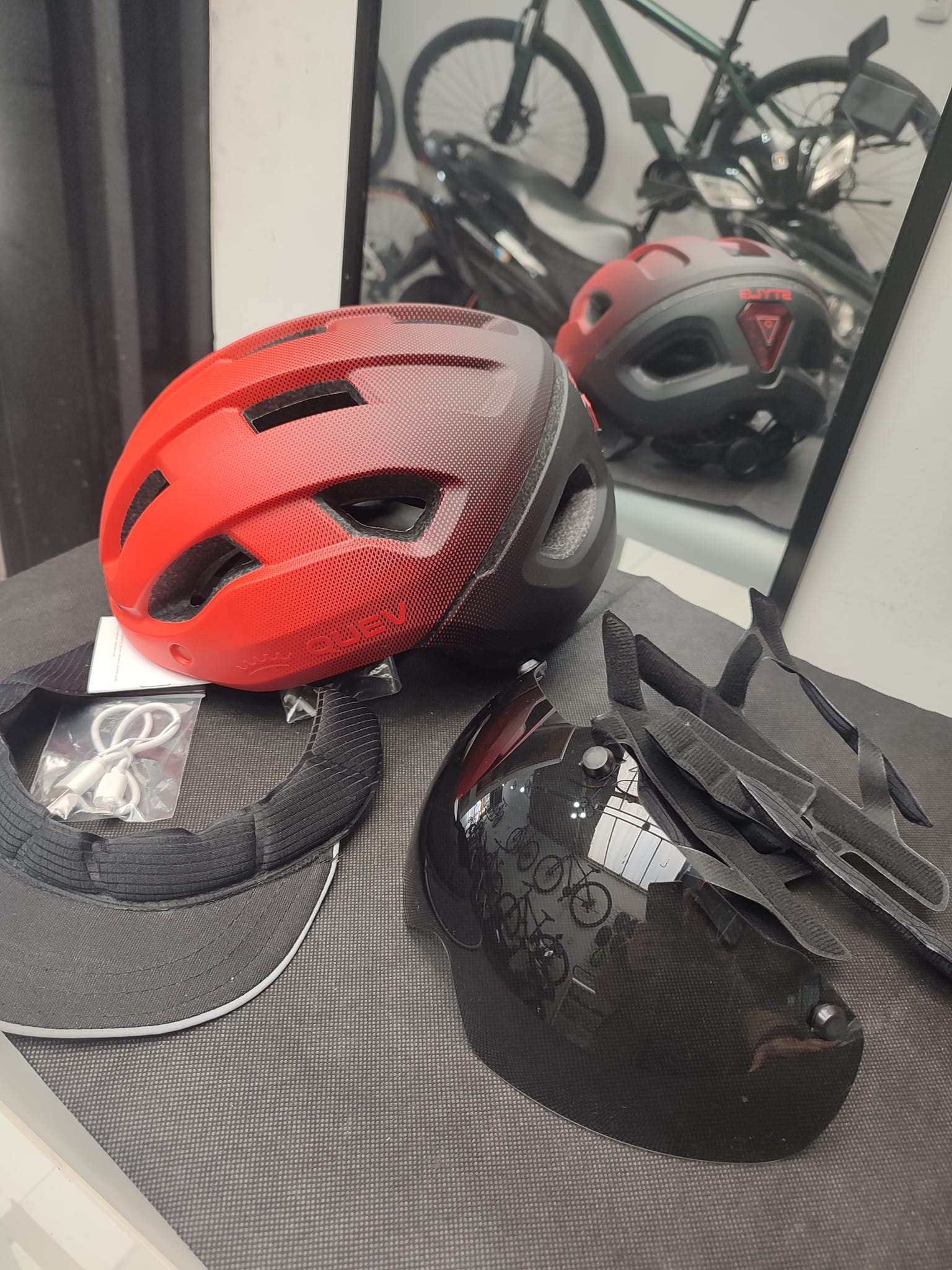 Casco homologado marca Quev incluye gafas imantadas , luz posterior recargable por puerto USB, Visera para el sol ,Se le entrega de obsequio esponjas internas